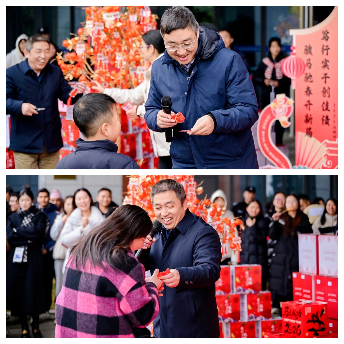 在工会小组长们的引导下,游园会现场人头攒动。大家有序签到、领取游园券、新春对联和福贴,并将抽奖卡悬挂于幸运树上,喜迎新春喜气。在“开门红”幸运抽奖环节,现场欢呼声与尖笑声此起彼伏,喜庆氛围直接拉满。