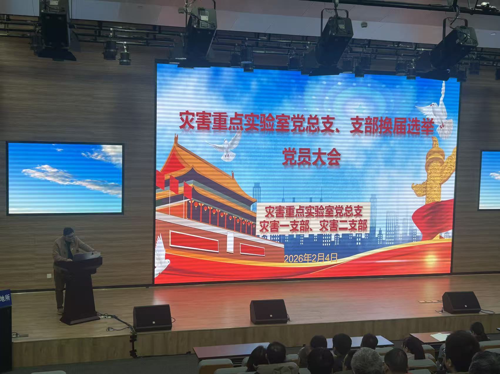 2月4日下午,山地自然灾害与工程安全重点实验室党总支、灾害一支部和灾害二支部联合召开2026年第一季度党员大会,开展支部(总支)换届选举工作。重点实验室党总支68名党员出席会议,佩戴党徽,亮明身份。会议由灾害总支书记杨宗佶主持。