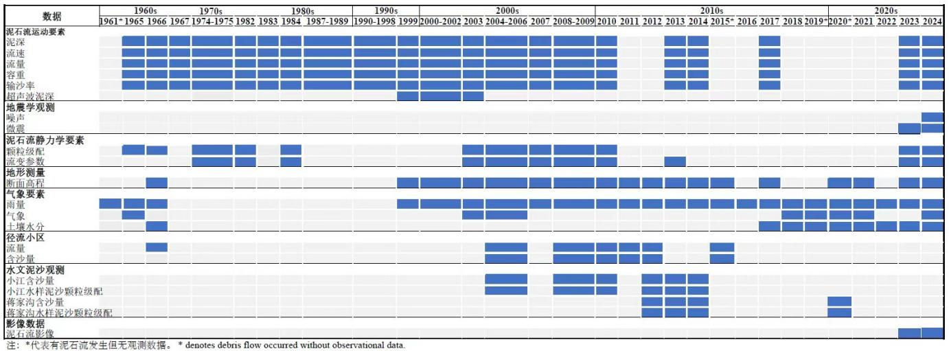 该数据集凝聚了东川站自1961年建站以来几代科研人员与观测人员的持续努力。东川站围绕泥石流灾变全过程及其与环境互馈中的关键科学问题,系统开展泥石流形成机理、动力学模型、物质输移、地貌响应以及极端气候条件下的成灾机制研究,为我国泥石流学科的建设与发展奠定了坚实基础,已成为国内外泥石流研究与防治的重要基地。
