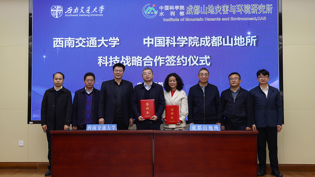 成都山地所与西南交通大学签署战略合作协议11月10日,成都山地所与西南交通大学科技战略合作签约仪式在西南交通大学犀浦校区举行。西南交通大学校长闫学东,党委常委、副校长王平和成都山地所所长康世昌、纪委书记周鹏浩出席仪式。