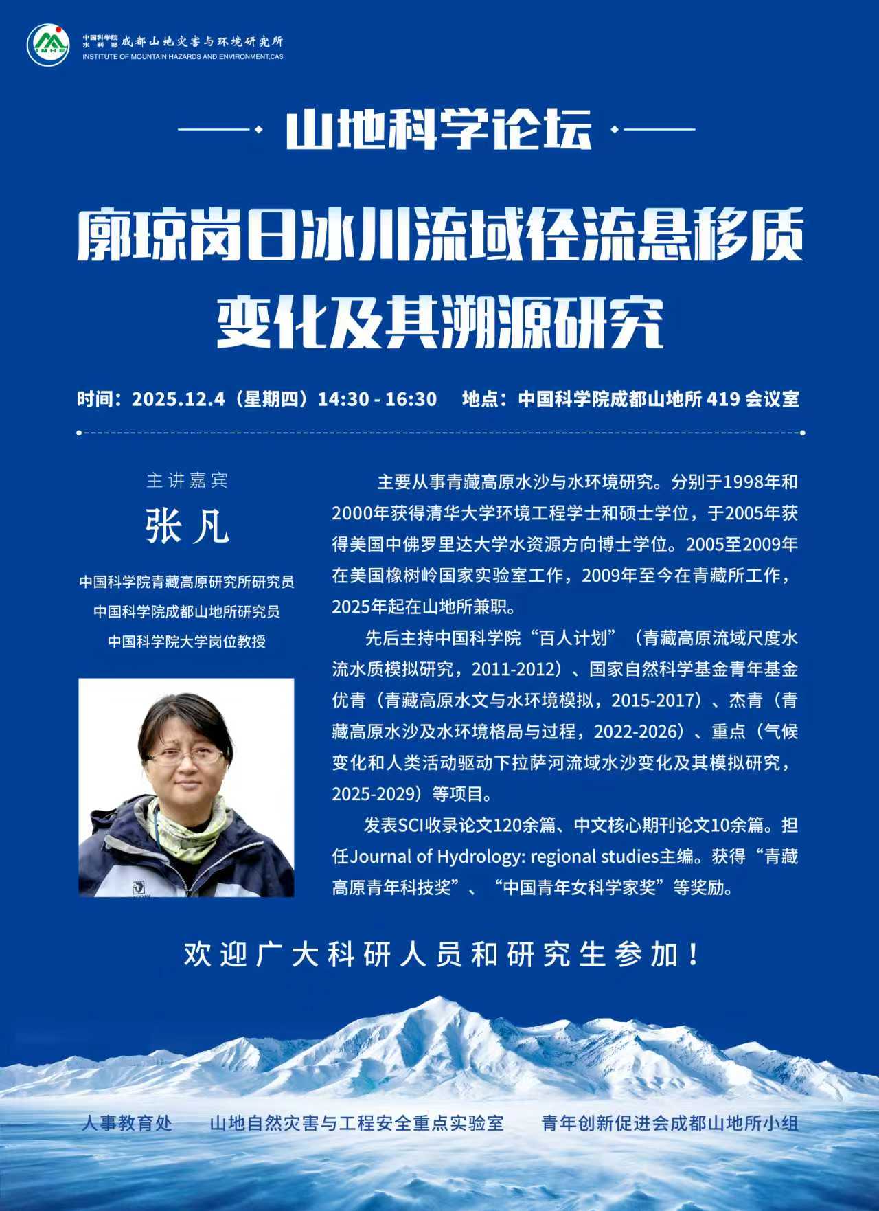 12月4日丨廓琼岗日冰川流域径流悬疑质变化记起溯源研究(青藏高原所张凡研究员)