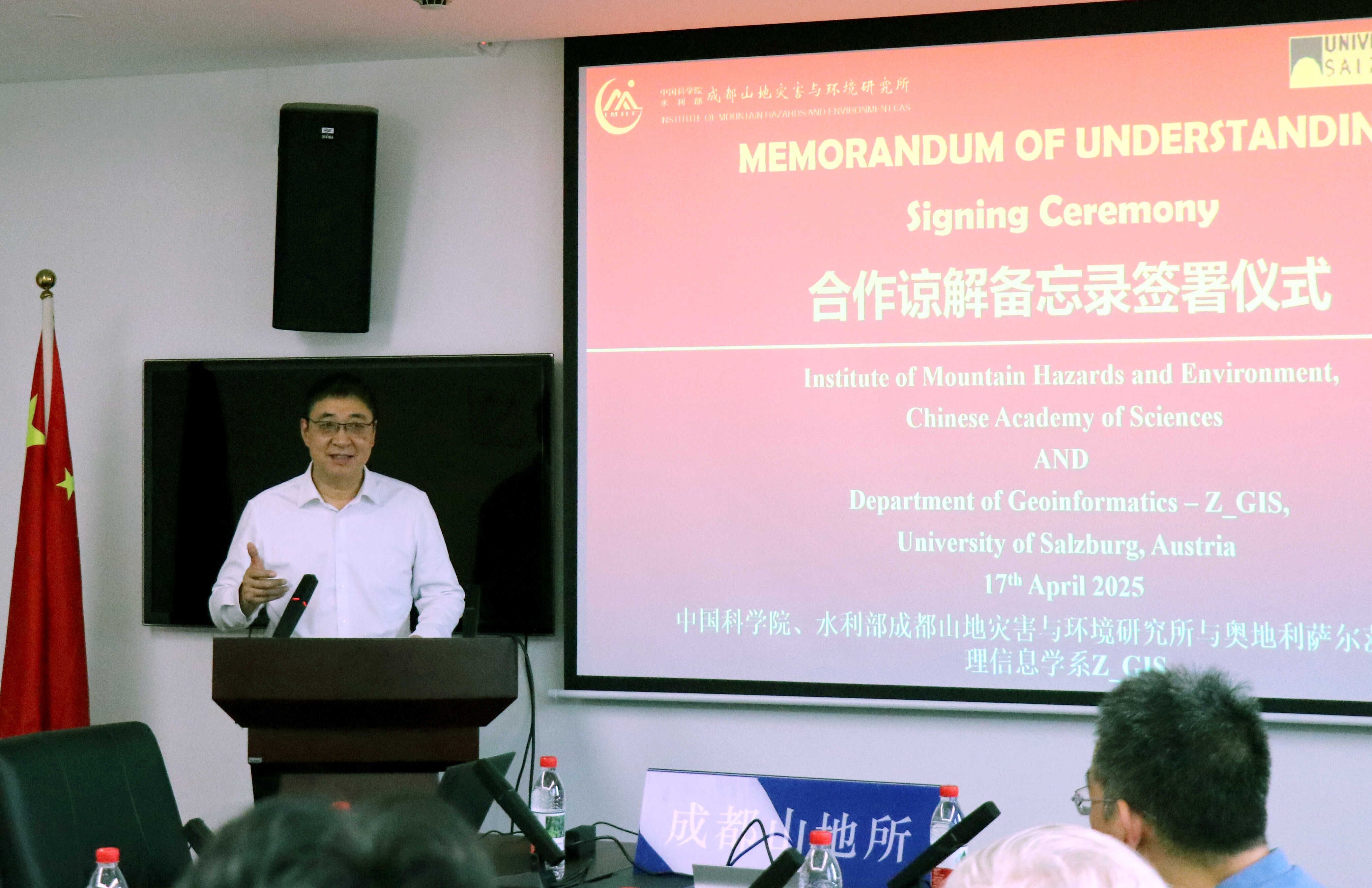 奥地利萨尔茨堡大学是拥有近400年办学历史的国际著名高校,其地理信息科学系是一个跨学科研究中心,在地理信息系统、遥感、空间数据分析和地理人工智能等领域处于国际领先地位。Thomas Blaschke教授是萨尔茨堡大学地理信息学系主任,奥地利科学院院士,也是地理信息学、地理信息技术与导航协会副主席,担任欧洲哥白尼计划和欧洲航天局(ESA)地球观测咨询委员会委员。受李爱农研究员邀请,Thomas教授入选了中国科学院PIFI杰出学者并对成都山地所进行交流访问。此次合作备忘录签署将进一步提升成都山地所山地系统科学研究和数字山地研究领域的国际影响力。