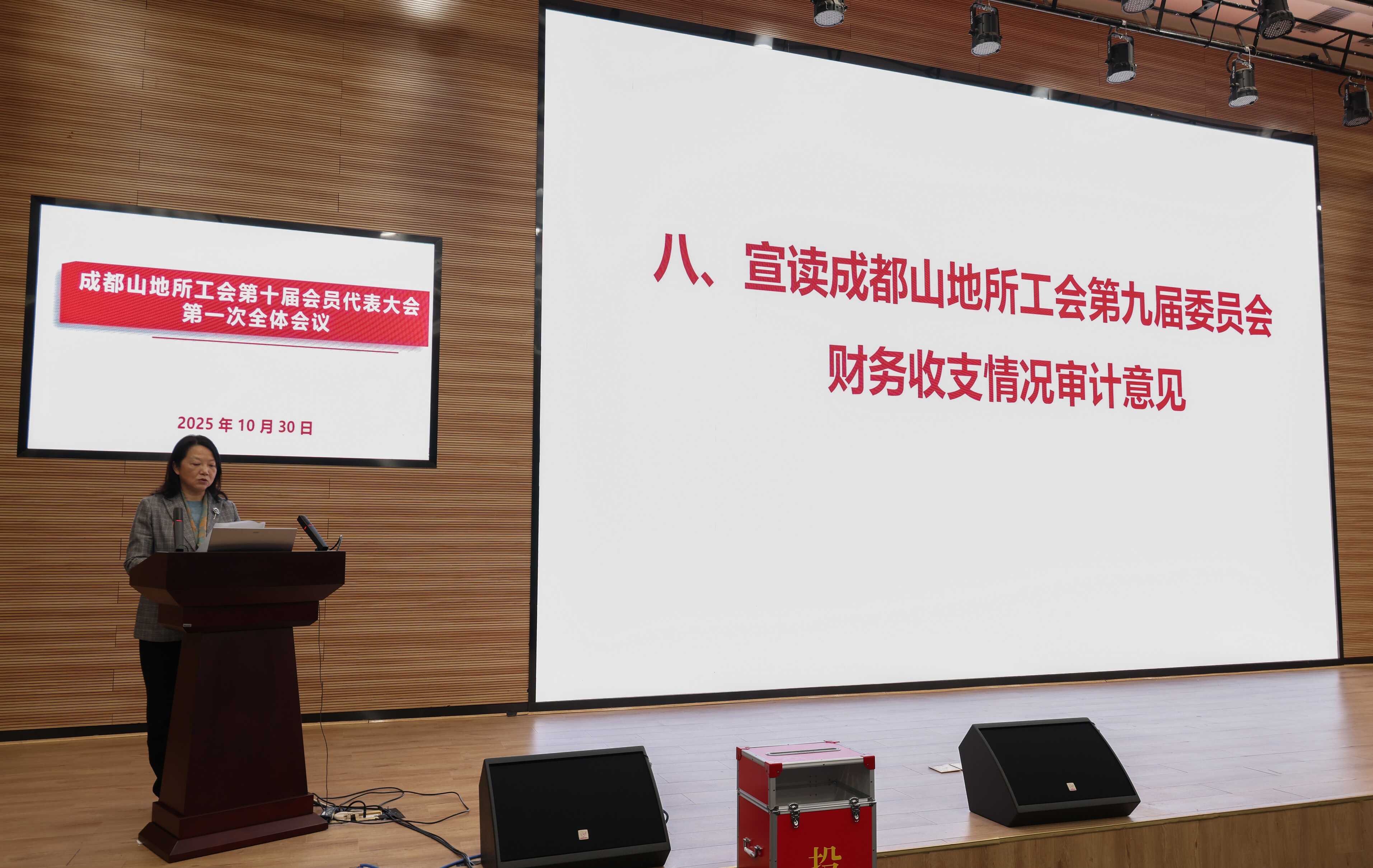 大会听取并审议了第九届工会财务工作报告。成都分院工会副主席田敏宣读了《关于成都山地所工会第九届委员会财务收支情况审计的意见》。
