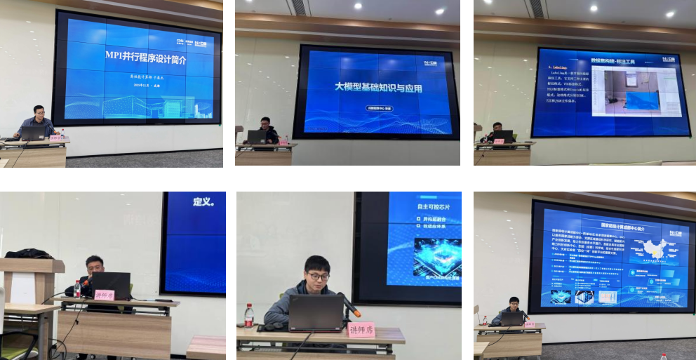本次培训采用“理论+实战+案例”模式,课程覆盖高性能计算与人工智能两大核心领域。超算领域,工程师团队讲解了超算系统架构、并行编程技术及平台模型应用,构建从理论到工程应用的知识体系;AI 领域,授课专家系统介绍了 AI 框架、数据处理方法及大模型和智能体应用,呈现完整人工智能应用流程。