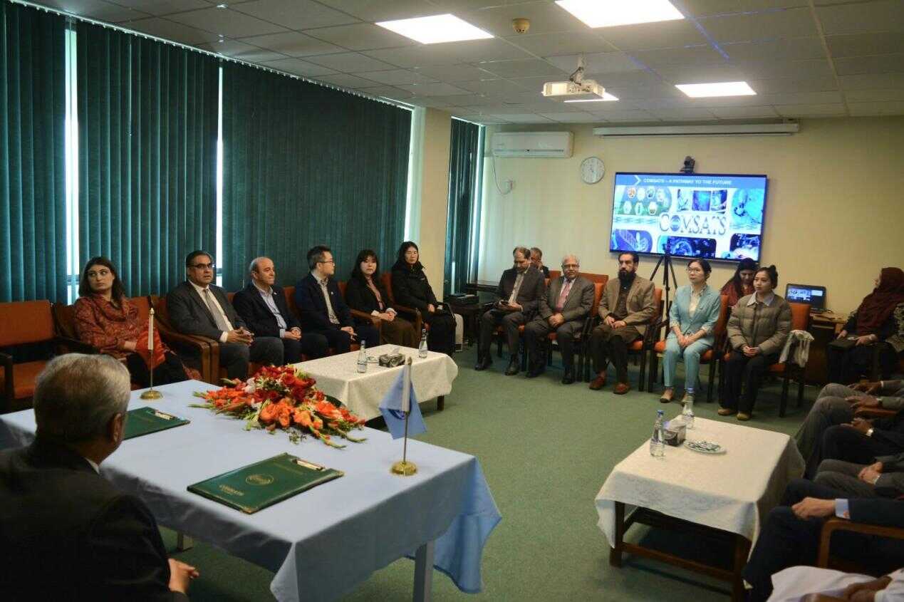 11月27日,中国科学院中国-巴基斯坦地球科学研究中心(简称“中巴中心”)与南方科技促进可持续发展委员会(COMSATS)在巴基斯坦伊斯兰堡COMSATS总部签署合作谅解备忘录。COMSATS执行主任Nafees Zakaria,中巴中心执行主任洪天华、副主任雷雨出席签约仪式,来自孟加拉国、摩洛哥、斯里兰卡、津巴布韦、索马里等国驻巴基斯坦大使或使馆代表共同见证了此次签约。