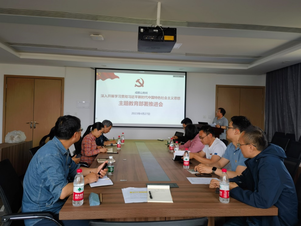 2023年4月27日下午,灾害一支部召开“凝心铸魂筑牢根本 实干担当促进发展”主题党日活动,深入学习主题教育的重要性,传达主题教育具体工作要求。活动采取线上与线下相结合的方式开展,活动由支部书记陈华勇主持。到会党员集体佩戴党徽,亮出“身份”。