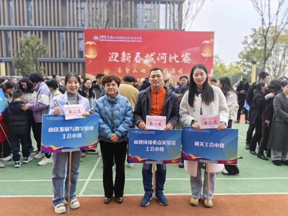 最终,山地环境重点实验室联队凭借出色的团队协作和顽强的拼搏精神,勇夺冠军;山区发展数字山地联队获得亚军;机关联队荣获季军。此次拔河比赛不仅充分展现了各参赛队伍的团队协作精神,也为冬日的单位增添了无限的活力与欢乐氛围。