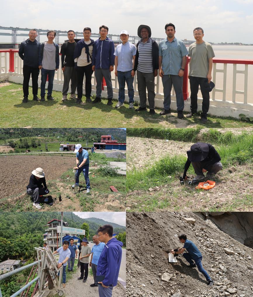 6月26日至29日,合作团队在尼泊尔特里布文大学Gyanu Raja教授陪同下,开展了柯西河流域联合野外科学考察。此次科考围绕柯西河流域植被垂直地带性分异规律、人类活动热点、跨境水文枢纽和人工调控效应、山地灾害分布和生态安全风险等问题展开,路线贯穿尼泊尔中山区、山前丘陵和特莱平原。通过实地踏勘、野外采样、遥感监测等手段获取了一手野外调查数据,深化了团队对流域水土耦合效应与生态安全风险认知,为流域水土耦合监测与模拟提供了关键支撑。