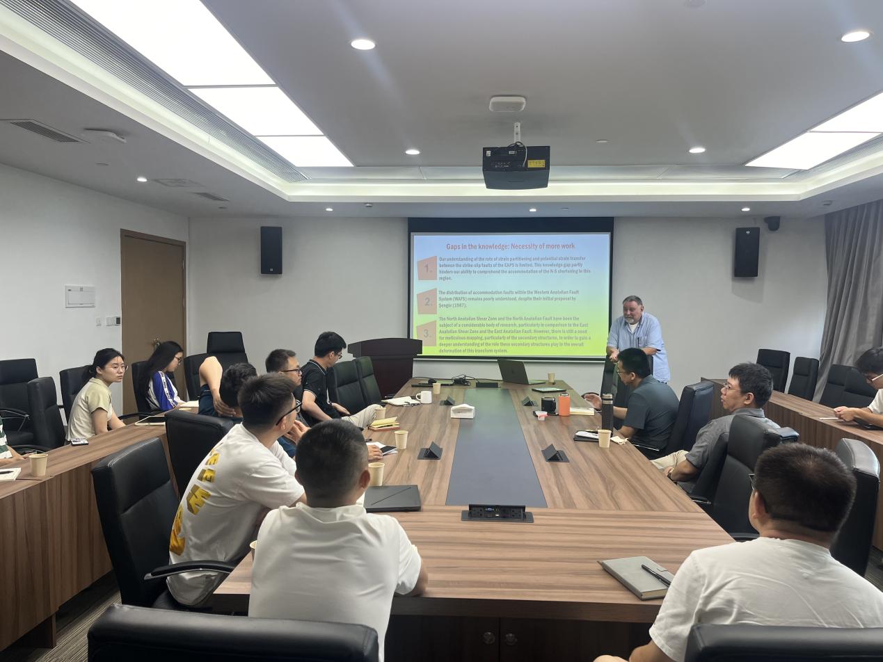 三场报告结束后,与会专家就大陆构造变形、活动断裂与地震灾害链等热点问题展开深入交流,现场提问踊跃、气氛热烈。此次学术研讨会为与会学者搭建了高水平交流平台,进一步深化了实验室在构造地质与地震灾害研究领域的国际学术合作。