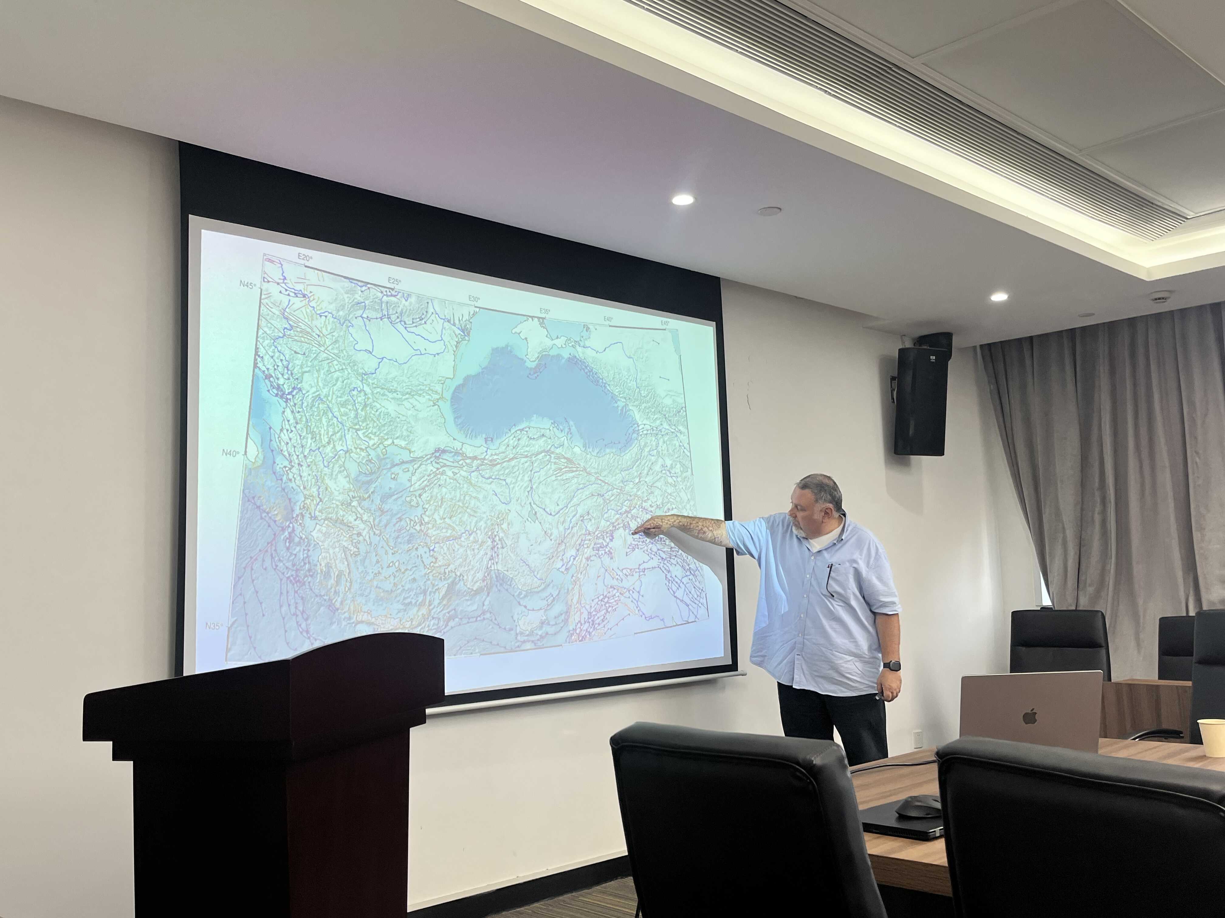 Zabcı教授以“Neotectonics of the Anatolian Scholle: Deformation of continental blocks in convergent tectonic settings”为题,系统解析了欧亚-阿拉伯板块汇聚背景下安纳托利亚陆块新生代以来的变形特征。报告结合古地震学、构造地貌学和其他多学科技术(如古地震探槽、小型无人机遥感等),解析了北安纳托利亚和东安纳托利亚断裂带的地震活动特征与变形机制,为理解大陆块体在复杂构造环境中的运动行为提供了重要依据。