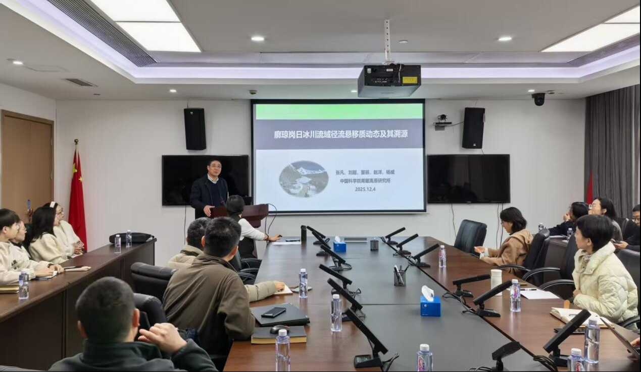 12 月 4 日下午,成都山地所人事教育处联合山地自然灾害与工程安全重点实验室、中国科学院青年创新促进会山地所小组共同举办了山地科学论坛活动。本次论坛以 “廓琼岗日冰川流域径流悬移质变化及其溯源研究” 为主题,特邀中国科学院青藏高原所研究员张凡作专题学术报告。所长康世昌主持论坛。